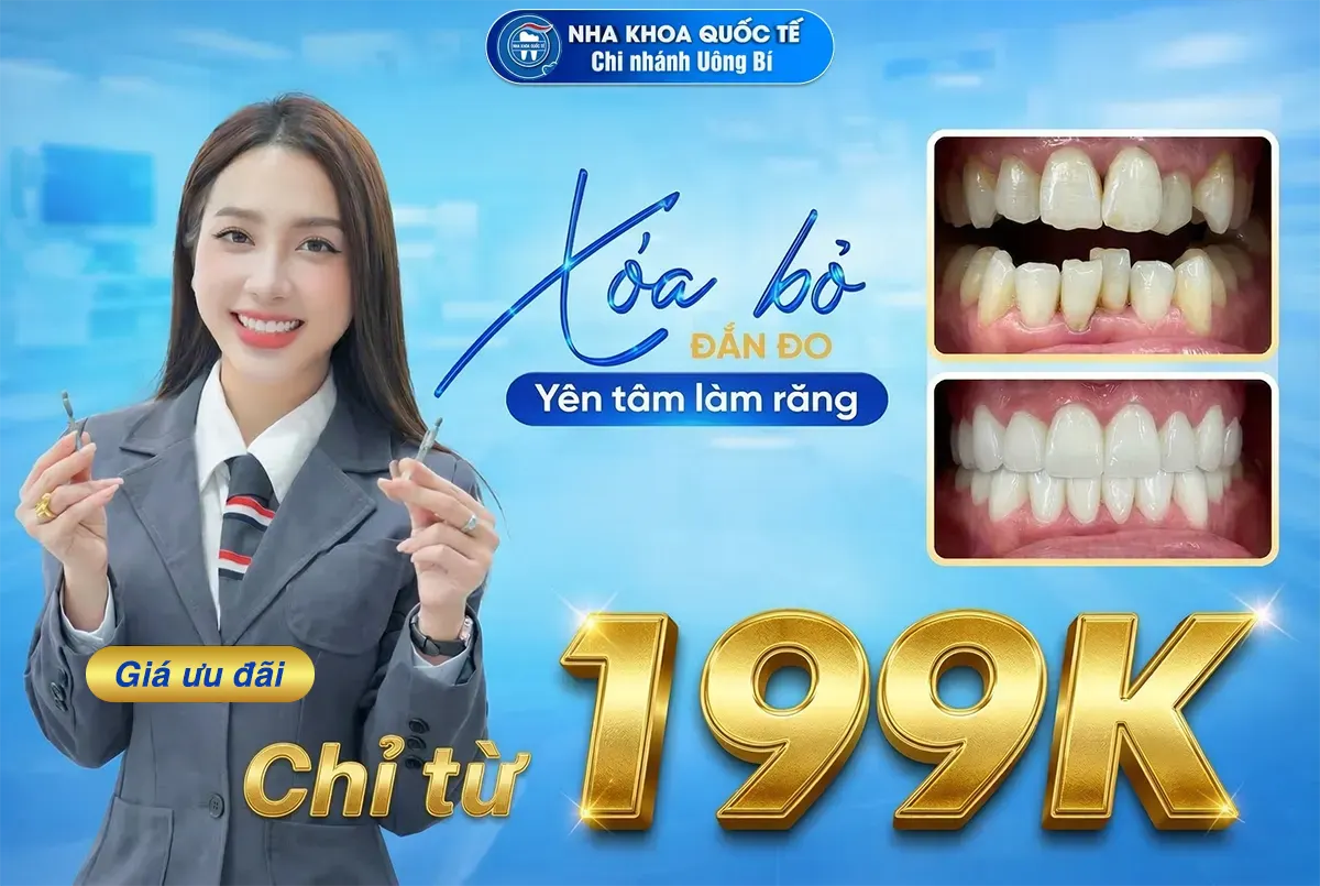 ƯU ĐÃI DÁN SỨ THẨM MỸ CHỈ TỪ 199K TẠI NHA KHOA QUỐC TẾ UÔNG BÍ